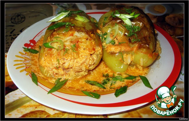 Сложить фаршированные перцы в огнеупорную форму, залить соусом и поставить запекаться в духовой шкаф на 35-45 минут.