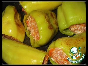 Перец очистить от плодоножек и семян, бланшировать в кипящей воде 3-5 минут (в зависимости от величины и толщины перца).