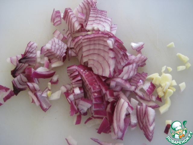 Лук мелко нарезать.