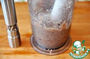 Берём остывшую фасоль, её получается около 250 граммов, добавляем соль, свежемолотую смесь перцев и измельчаем с помощью блендера в пюре.