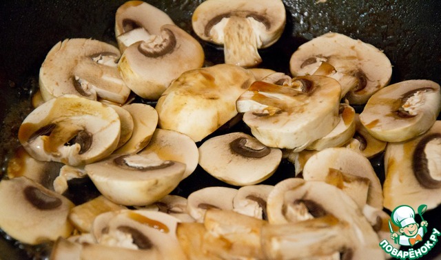 Затем добавляем несколько столовых ложек соуса и тушим до готовности.