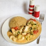 Вкусно получилось! Всё по рецепту. Индейка мягкая и нежная. Подлива очень ароматная и вкусная. Сливки были 10 %, немного свернулись, но на вкус не повлияло. И овощи вкусные, особенно кабачок. Кабачки сейчас молоденькие, нежные. Поэтому я его не бланшировала. Спасибо большое за рецепт!