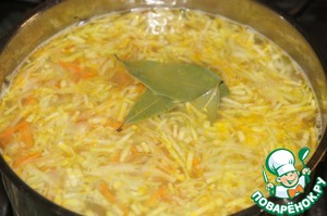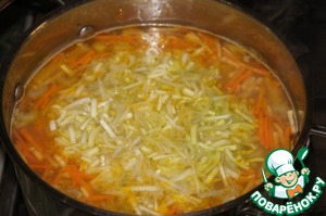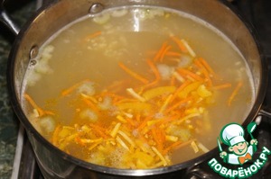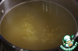 В бульон всыпать хорошо промытое пшено, проварить 15 минут,