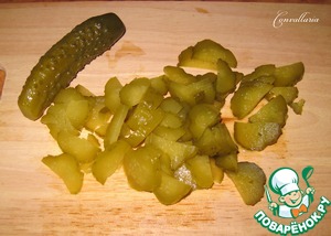(У меня корнишоны в остро-пряном маринаде из домашних заготовок). -