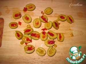 - Оливки зеленые (фаршированные перцем) — 100 г