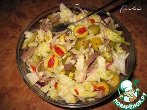 Рецепт «Салат с языком, оливками и корнишонами»: