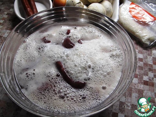 • Заливаем почки водой, доводим до кипения, снимаем пену, провариваем пару минут.