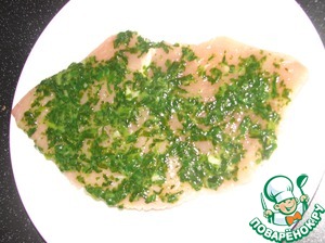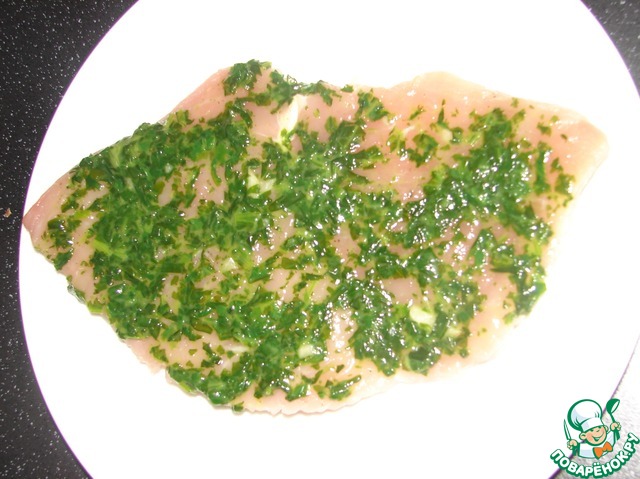 Грудку разрезать на 8 пластов, отбить, посолить и поперчить. Отставить на время в сторону.
