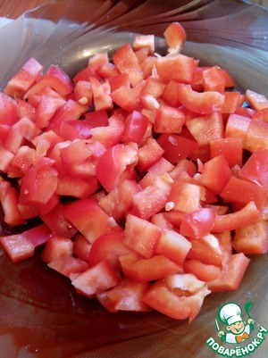 Красный болгарский перец режем на мелкие кубики.