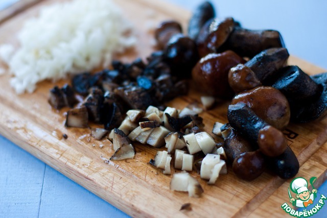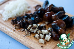 Лук и грибы мелко нарезать. У меня замороженные подосиновики.