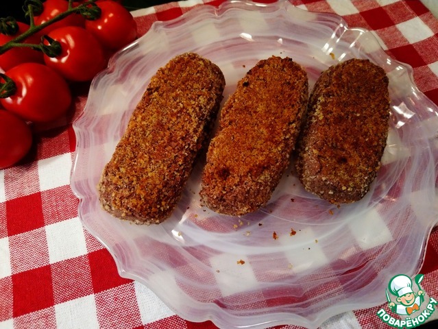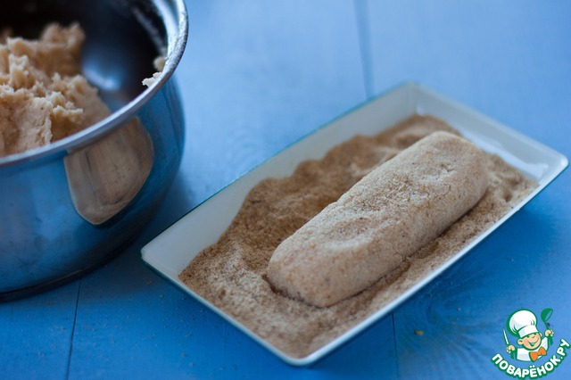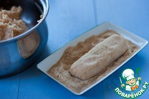 Сформируйте "пирожок" и обваляйте его в панировочных сухарях.