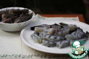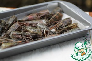 У креветок скрутить головы, хорошо промыть. Сложить в сито, чтоб вода хорошо стекла. Вы не поверите, но на готовые головы всегда найдется любитель!