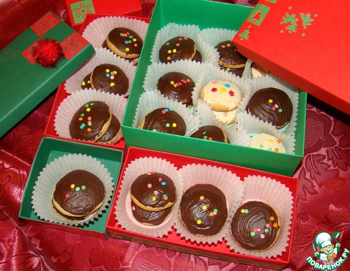 Вкусное песочное печенье, покрытое шоколадной глазурью, просто тает во рту. Приготовьте такое печенье своим детишкам, они точно будут в восторге. Мы с дочкой решили сделать такие маленькие подарочки, поклеили коробочки и положили туда печенье. Такой подарочек можно подарить своей подруге, бабушке с дедушкой. Ведь этот подарок сделан своими руками, а такие подарки ценятся больше всего.
