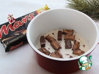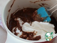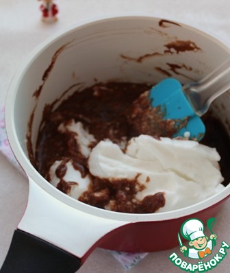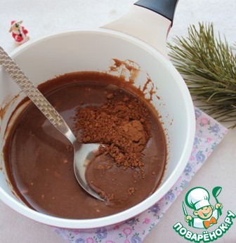Когда "Марсы" растают, добавим какао и как следует перемешаем. Дадим шоколадной массе чуть остыть и взобьем её погружным блендером. |