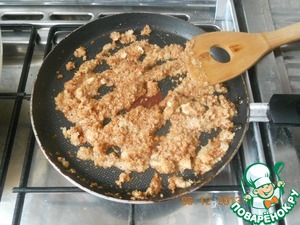 • В сковороде разогреть масло, добавить кокосовую стружку, орехи кешью. Растолочь кардамон, добавить в смесь и тушить 3 мин.