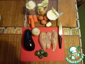 Ингредиенты для «Наливной пирог в СВЧ "Птичка в баклажанах"»: