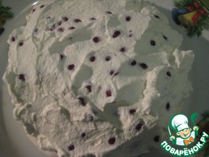 Собираем торт. Сначала один корж, на него выкладываем весь крем со смородиной.