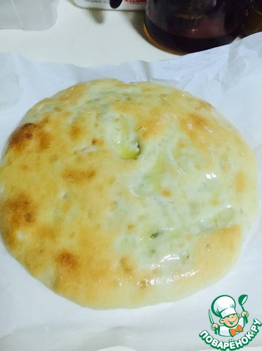 Ещё один секрет осетинских пирогов: после выпечки, промазать обильно верх и края добрым куском масла. Я брала 50 грамм. Если масло всё не впиталось в тесто, оставить в середине, оно будет таять и пропитывать начинку. -