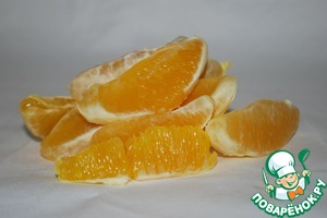 В это время чистим апельсин, разделяем его на дольки