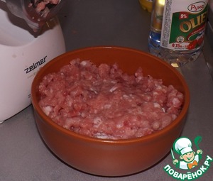 В кастрюльку кладем специи, солим и отвариваем фарш. Охлаждаем. Оставляем немного бульона, примерно 100 мл.
