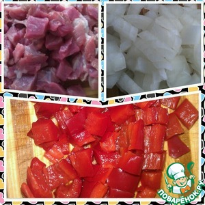Обжариваем по очередности: Мясо -5 минут (сразу посолить), томатную пасту - 10 минут, лук -5 минут, перец 3 минуты и залить водой, дать вскипеть на сильном огне, затем убавить огонь, закинуть консервированную кукурузу и накрыть на половину крышкой;