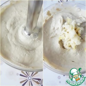 Измельчить блендером до кремообразной консистенции, майонеза может понадобиться немного больше. Раздавить чеснок и добавить к крему. Тщательно перемешать.