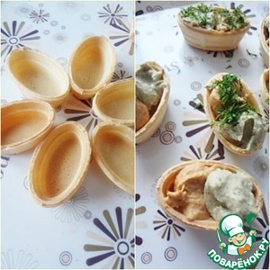 Рецепт «Вафельные лукошки с разноцветной начинкой»: