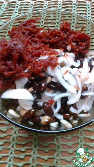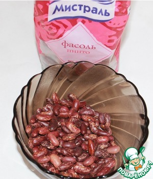 Замочим фасоль на 4-5 часов, затем отварим до готовности.