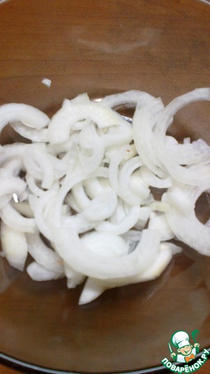 Среднюю головку репчатого лука нарежем мелко полукольцами