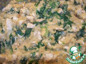 Снимаем нашу смесь с огня и добавляем шпинат, хорошенько перемешиваем.