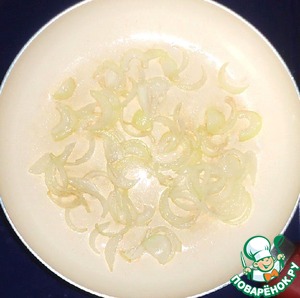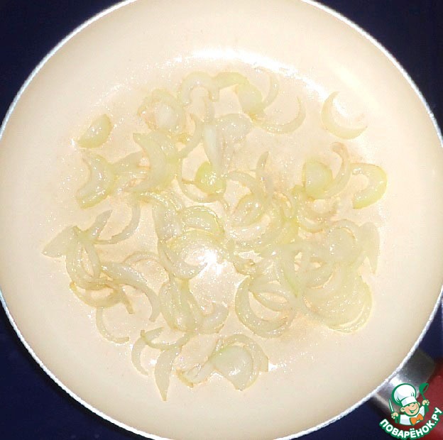 Лук обжарить на растительном масле до лёгкого золотистого цвета.