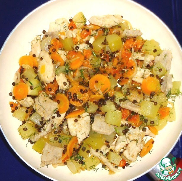 Рецепт «Овощное рагу с мясом, чечевицей и курагой»: