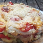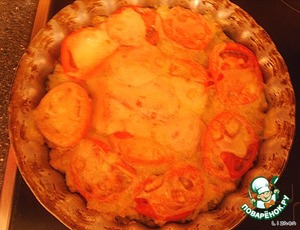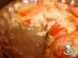 Вот почти всё и готово. Берём вкусные помидорчики, режем тоненькими кругляшками и выкладываем на нашу запеканку, они дадут сочность. Сверху выкладываем сыр нарезкой, чтобы он закрывал всё блюдо. Сверху кладём кусочки сливочного масла. Запекаем до золотистой корочки или до тех пора, пока вам не покажется, что готово. -