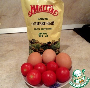 Сварить яйца и помыть помидорки.