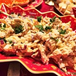 Все смешиваем и заправляем салат майонезом, смешанным с горчицей (количество горчицы зависит от того, какого вкуса салат вы хотите получить, я добавляю 1 чайную ложку+ выдавливаю немного сока лимона, соль и перец добавлять по вкусу).