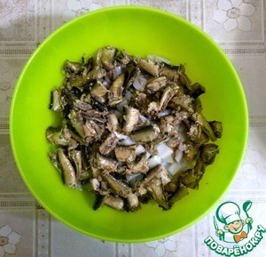 И поставил обжариваться вместе с луком, оливками, маслинами и стеблями укропа.