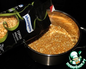 Горох промыть, поместить в кастрюлю с водой (в соотношении 1:2), довести до кипения. После закипания варить до готовности 30-40 минут на слабом огне.