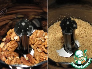 Грецкие орехи измельчить не очень мелко, чтобы чувствовался вкус.