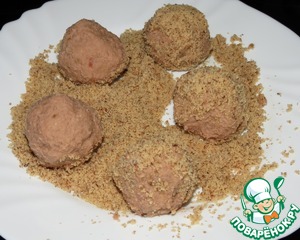 Из полученной массы скатать шарики, размером с грецкий орех и обвалять в измельченных орехах.