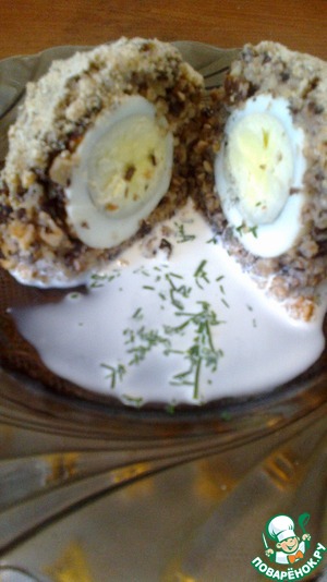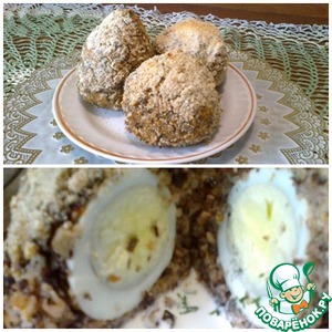 Берём яйцо и фаршем полностью окутываем его - получаются такие шары