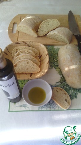 Для теста: опару растворить в 300 г. воды, добавить 400-450 г. муки, соль и масло и замесить мягкое очень влажное тесто в течение 10-15 минут. Точное количество муки может меняться в каждом конкретном случае, что связано с влажностью муки, помещения и т. д. Поэтому ориентируйтесь на внешний вид теста - оно ОЧЕНЬ влажное. Вообще тесто для чиабатты - это самое "мокрое" из всех видов теста.