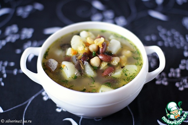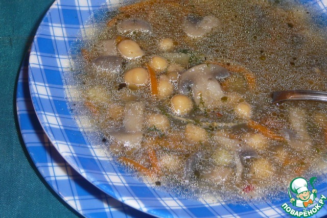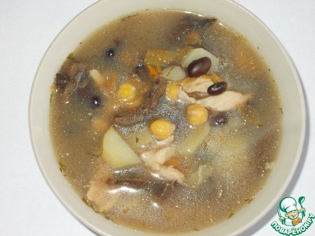 Рецепт «Куриный грибной суп с фасолью и нутом»: