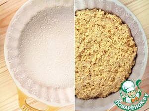 Включаем духовку на 180 градусов, смазываем форму маслом и присыпаем сахаром.
