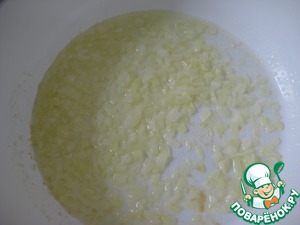 В сковороде с толстым дном разогреть 2 ст. ложки сливочного масла, на медленном огне обжарить лук 3 минуты, добавить 3 ст. ложки горячего бульона и на медленном огне потушить 10 минут.