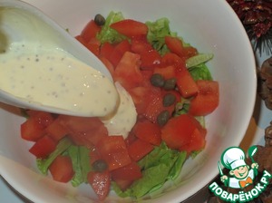 Листья салата порвите руками, помидоры крупно нарезать. Смешайте, добавьте каперсы, посолите, поперчите.
