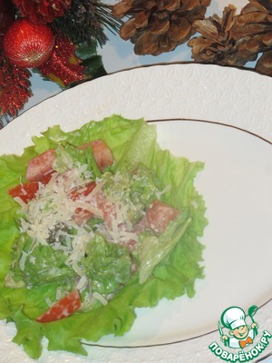 В классическом "Цезаре" многим не нравится, что от соседства с горячей курицей листья салата вянут и жухнут. Здесь же курица - отдельно, салат - отдельно. Такой "Цезарь" легко превратить в горячую закуску или основное блюдо с гарниром.