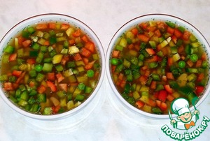 Заполнить креманки бульоном и поставить в холодное место.