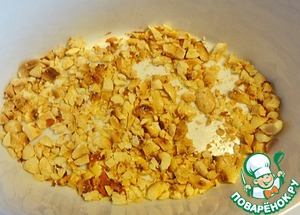 Орешки поджарить на сухой сковородке и измельчить.