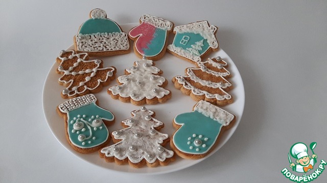 6. Дайте глазури высохнуть и все, можно вешать на елку или есть ).