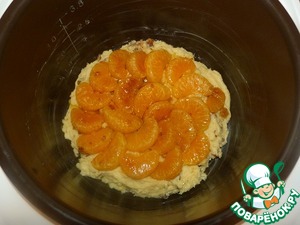 Сверху на тесто разложила мандариновые дольки.